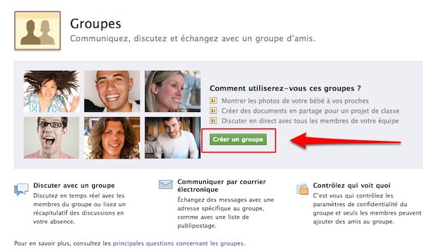 •Rendez-vous sur la page Groupe de Facebook et cliquez sur le bouton «Créer un groupe»